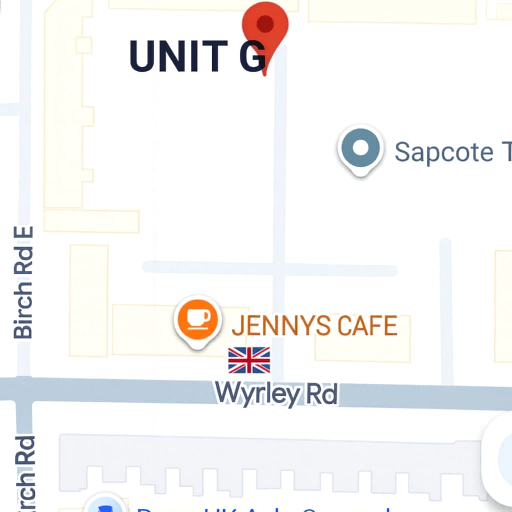 Our address is: Unit G Sapcote Trading Estate, 68 Wyrley Road, Birmingham, B6 7BN